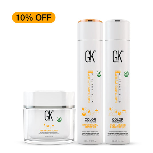 GKh Hir which is a leading hair care company in hair smoothing is not only No. 1 in keratin treatments but also in aftercare products. GK Hair provides the best shampoos for keratin treated hair to maintain the results of a keratin treatment and to protect your hair keratin for a longer period. When your hair loses its protein; keratin it becomes frizzy, brittle and dull. GK Hair Moisturizing Shampoo is free of sodium, sulfates, parabens and other harmful chemicals. The shampoo is mild for your hair and provides a dose of Juvexin keratin every time you use it.