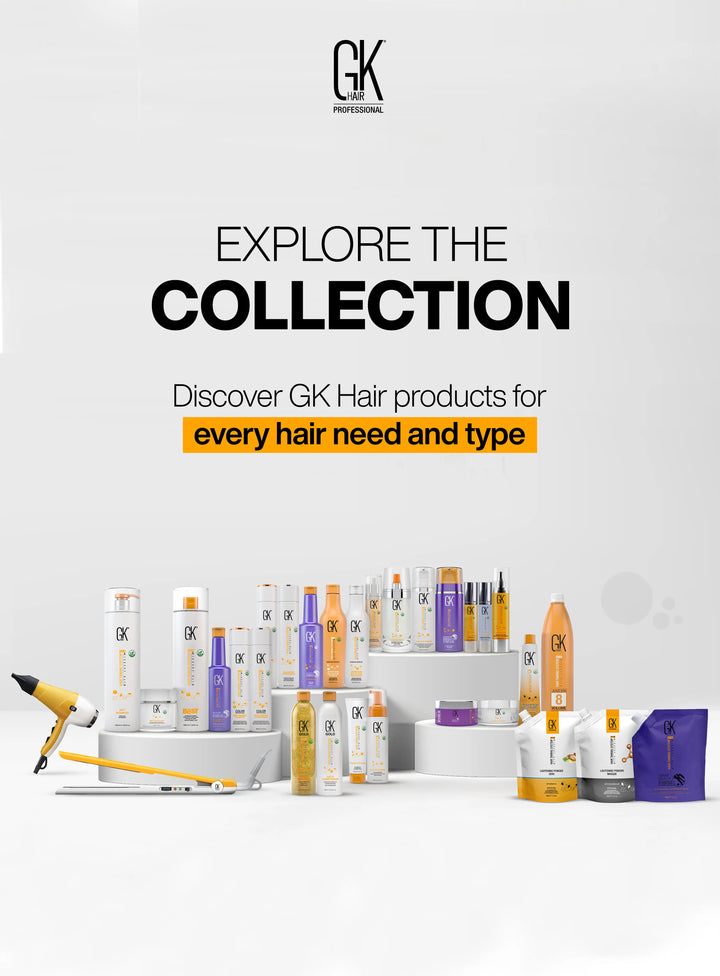 Discover the best hair products from GK Hair, crafted to give your hair unparalleled shine, strength, and vitality. Our professional hair care products feature Juvexin V2, a plant-based protein that repairs, strengthens, and protects against environmental damage. Whether you need hydration, color protection, or frizz control, GK Hair has the best hair care products for every hair type.