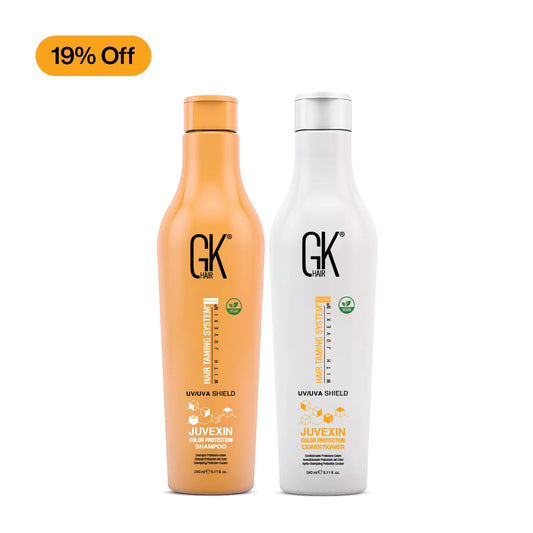 Los cortes regulares ayudan a prevenir las puntas abiertas al cortar las puntas dañadas cada 6-8 semanas. Esto detiene que las puntas abiertas se extiendan por el tallo del cabello. La hidratación es clave; considera hacer acondicionamientos profundos semanalmente y sellar la humedad con GK Hair Shield Shampoo para proteger contra el daño UV. Para nutrir las puntas secas y reducir el frizz, hidrata con GK Hair Leave-In Conditioning Cream. Usa protectores térmicos para proteger el cabello del daño o, cuando sea posible, evita los instrumentos de calor. Comienza a minimizar la fricción y la rotura usando almohadas de seda y los champús sin sulfatos de GK Hair.