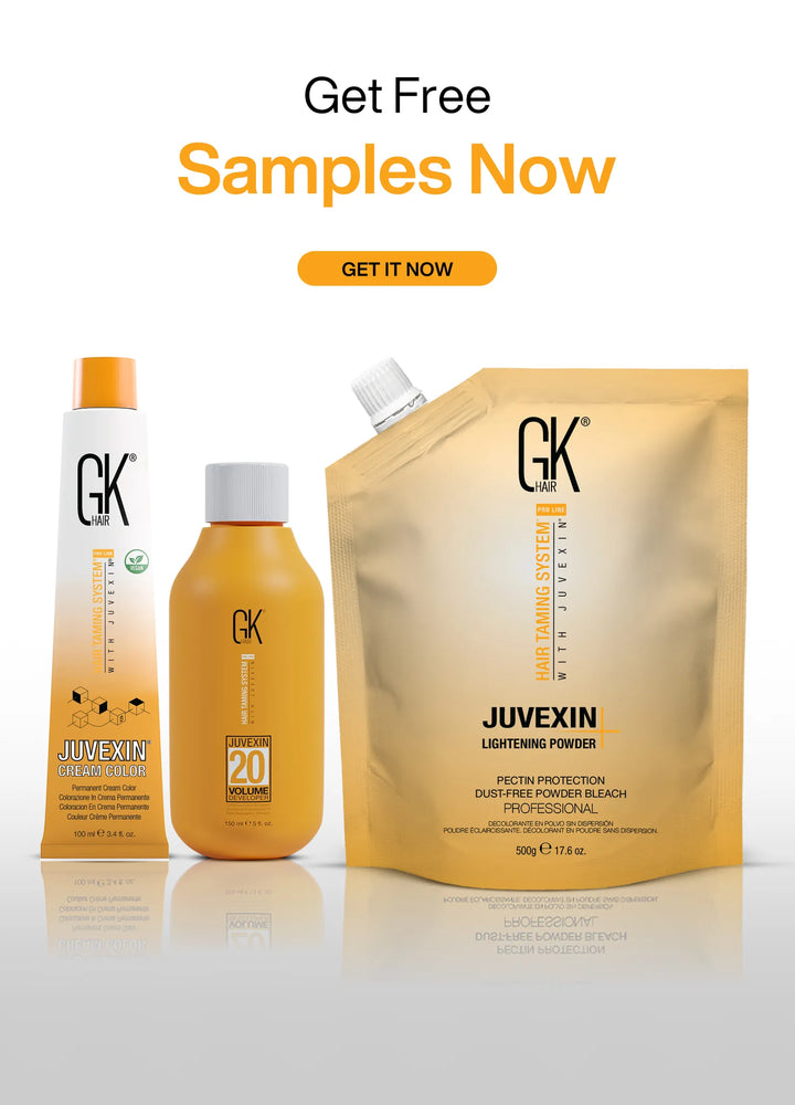 Resalta alternando babylights y tejidos en cortes alternativos con Juvexin Lightening Powder+ y 20 Volume Developer. Champú con champú GK Hair Silver Bombshell y difuminador de raíces Juvexin Cream Color 8.1 y 8 Vol Dev. Mientras tonifica con 10.12 con 10 Vol durante 3-5 minutos en el eje hasta el final. Acondicionado con acondicionador profundo GK Hair